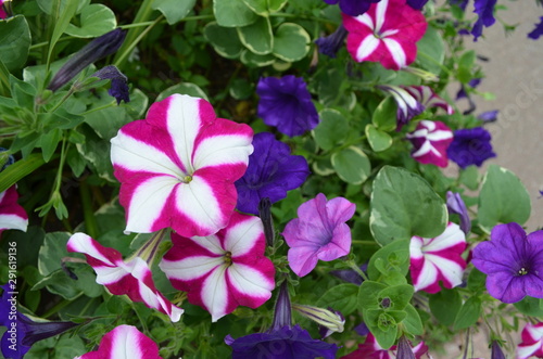 Summer in Vermont: White and Magenta Pinwheel and Purple Petunias