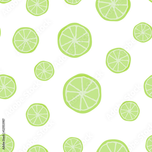 Summer lime seamless pattern with sliced lemons. Perfect for wrapping paper, textile for kitchen.