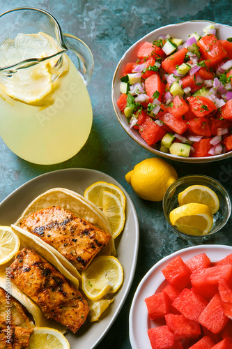Summer Meal - Fish Taco’s, Lemonade, Watermelon Slices, Watermelon Salad