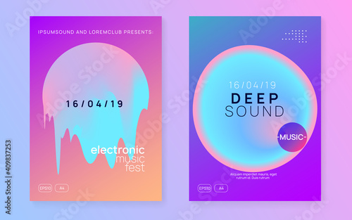 Summer music set. Electronic sound. Night dance lifestyle holiday. Cool trance club banner layout. Fluid holographic gradient shape and line. Fest poster and flyer for summer music.