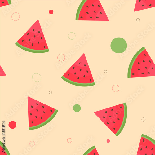 Summer pattern with watermelon slices. Juicy fruit pattern on a beige background