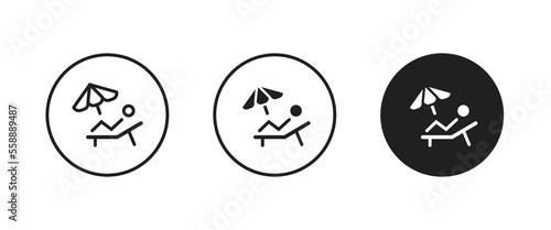 Summer relax sunbathing, Sunbed icon. Resort, beach, chair, furniture, lounger, parasol, relaxation, sea, umbrella Parasol lounger, sun