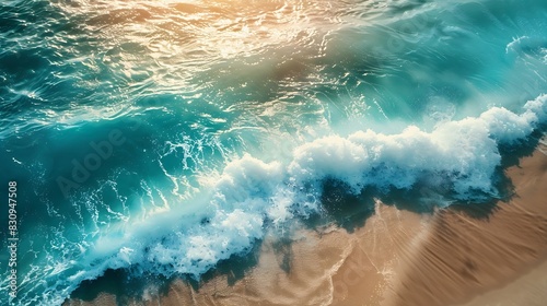 Summer seascape beautiful waves blue sea water in sunny day Top view from drone Sea aerial view amazing tropical nature background Beautiful bright sea waves splashing and beach sand s : Generative AI