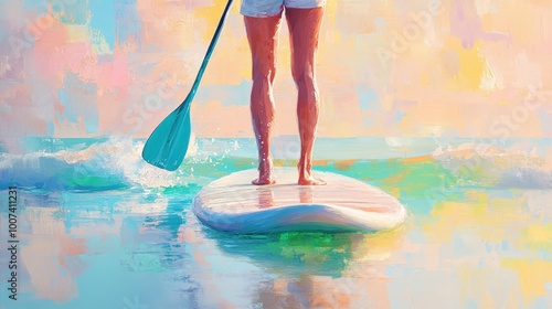 Summer Serenity: Vibrant Paddleboarding Adventure with Cinematic Lighting and Tranquil Pastel Tones