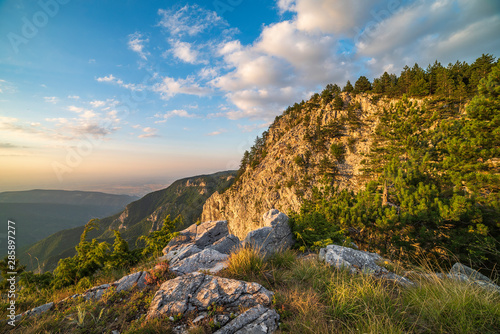 Summer sunset from The red wall reserve in Rhodope mountain, Bulgaria