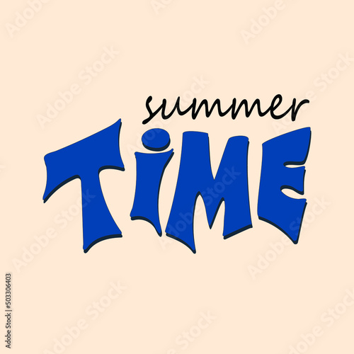 Summer time. Vector hand lettering. letters of Skydiver color on the Gossamer pink background. Trendy black calligraphy. Design for summer decorating banner brochure calendar.