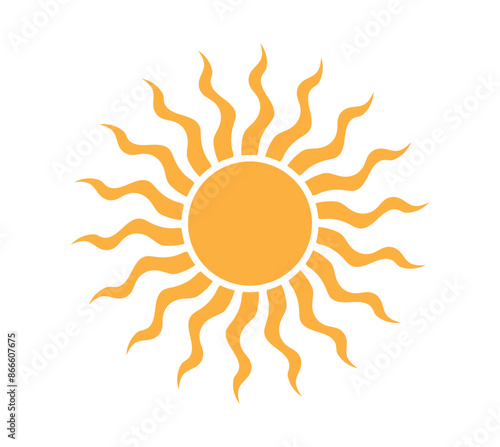 Sun icon isolated on white background. Sunshine, Sunset. Solar icon. Decorative circle full. Vector illustration