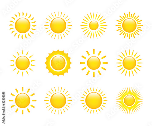 Sun icon set. Set of sun vector icons. Collection of sun stars for use as logo or weather icon.