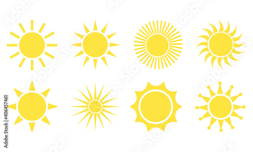 Sun icon set. Star logo icon. For summer, nature, sky, summer. Sun silhouette. Isolated vector illustration.