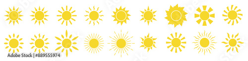 Sun icon set. Yellow sun icons. Sunburst set. Sunset icon collection. Vector illustration