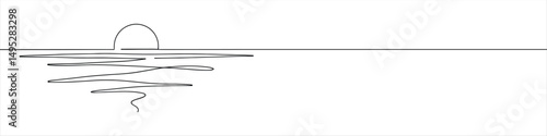 Sun on sea continuous one line drawing. Hand drawn sunshine.