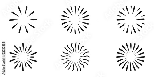 Sun rays icon in black lines. Vector illustration of hand drawn sketch of glowing circle.