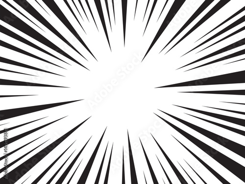 Sun Rays or Explosion Boom for Comic Books Radial Background Vector. Speed rays. Action, speed lines, stripes for comic book frame. Dynamic, speed stripes abstract frame. Comic book action background.