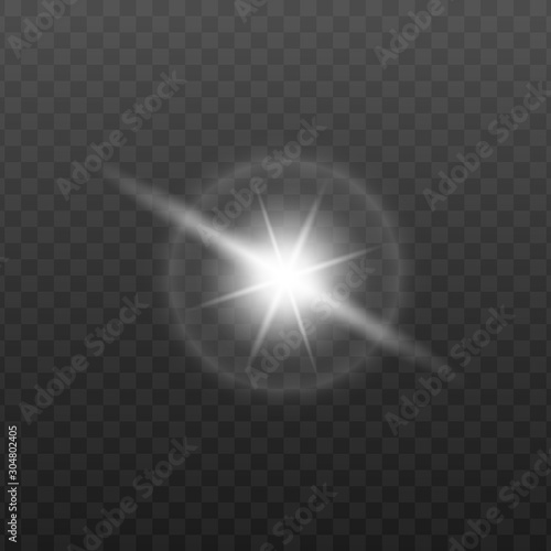 Sun rays radiance effect or flush bulb realistic vector illustration isolated.