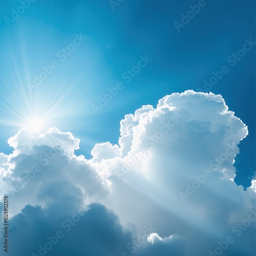 Sun Rays Through Dramatic Cumulus Clouds in a Blue Sky - Nature Photography