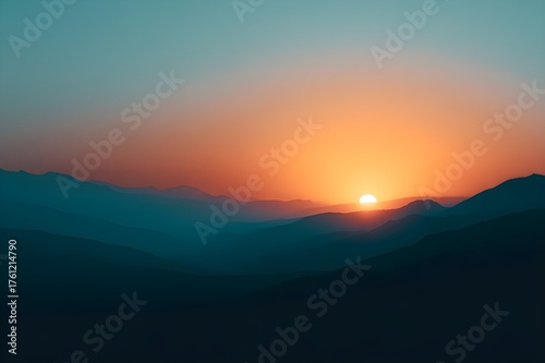 Sun Setting Behind Distant Mountain Range Layers Scenic Sunset Landscape Photography Nature View