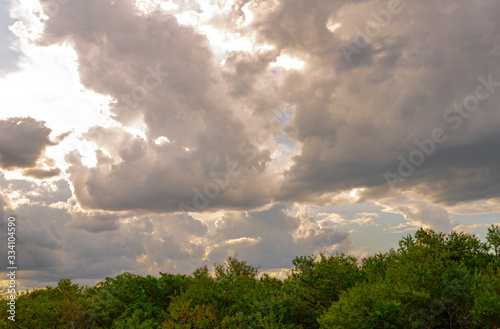 Sunbeams between clouds in the late afternoon in southern Brazil