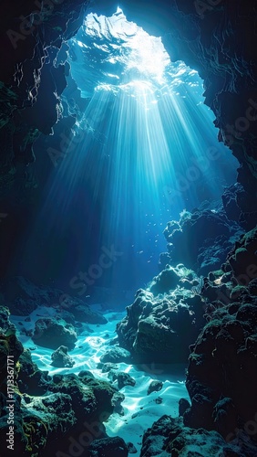Sunbeams pierce an underwater cave (1)
