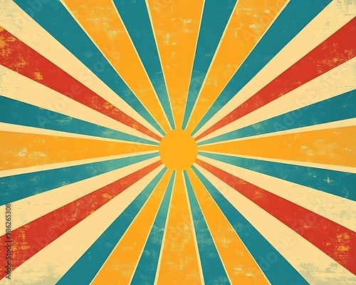 sunburst bright red, blue, and yellow colored stripes