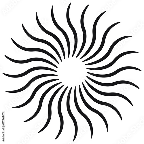 Sunburst, radial abstract geometric rays, flame, sun. Geometric element. Vector illustration.