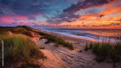 Sundown at Jockeys Ridge: A Vibrant Display of Colors Over North Carolina's Iconic Sand Dunes