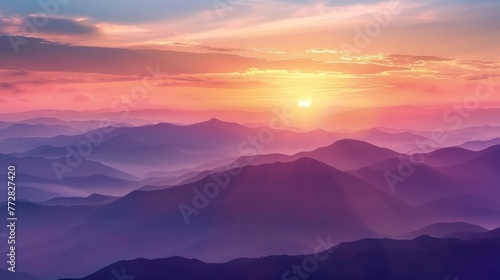 Sundown Serenity Over Cascading Peaks - A Majestic Mountain Dusk Generative AI