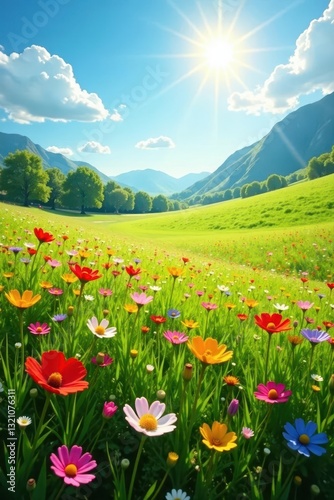 Sun-drenched meadow, vibrant wildflowers bloom , summer, daisy
