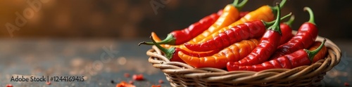 Sun-dried chili peppers arranged in a round wicker basket , basket, chipotle
