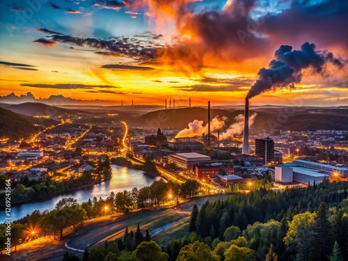 Sundsvall Sweden Silhouette Cityscape Panoramic Mountaintop View Paper Mill Sunset