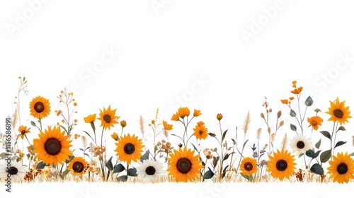 Sunflower Border Isolated on White and Background - Floral Design Element for Summer and Nature Themes