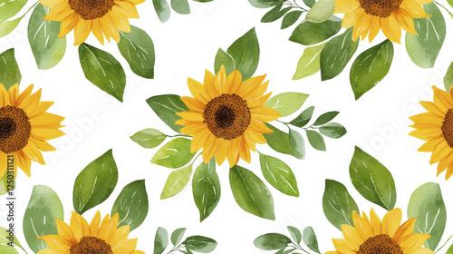 Sunflower pattern with vibrant yellow flowers and green leaves, perfect for cheerful designs