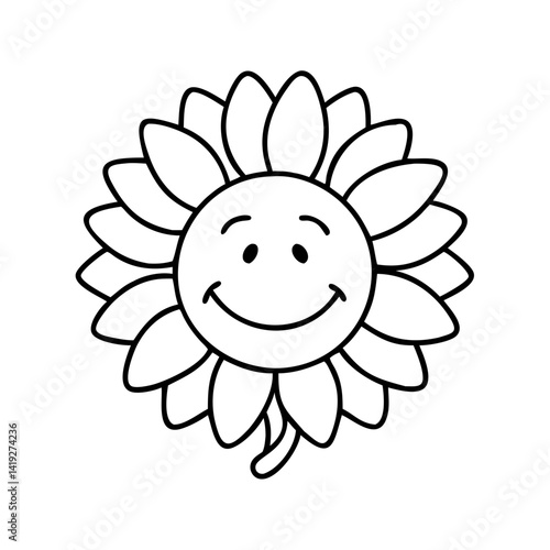 sunflower with a smile icon, sunflower with a smile line art - simple line art of sunflower with a smile, perfect for sunflower with a smile logos and icons