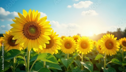 Sunflowers bask in sunlight, showcasing transpiration and growth , golden, flower