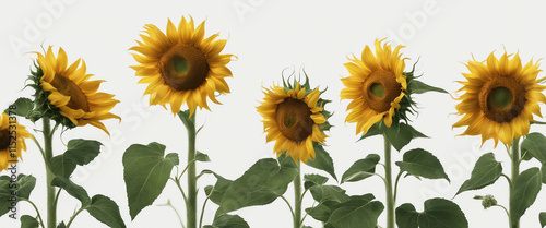 Sunflowers Border Isolated on White and Transparent Background