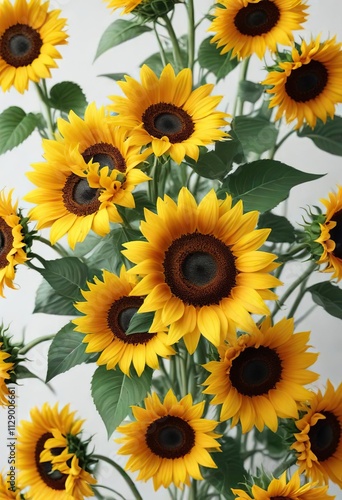 Sunflowers bouquet on a crisp white background, , fresh cut flowers