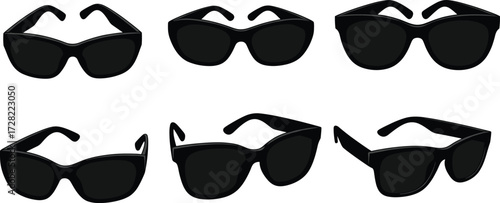 Sunglasses silhouette collection, black frame icons, fashion eyewear set, isolated on white background, vector illustration, stylish lens shapes, accessory design