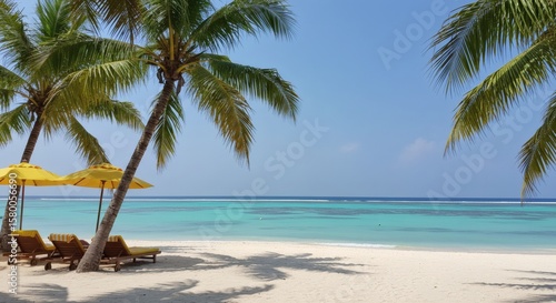 Sun-Kissed Tropical Beach with Azure Waters and Palm Trees