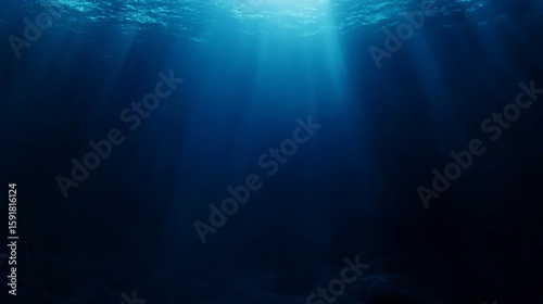 Sunlight Rays Shining Through Deep Blue Ocean Water Background Image