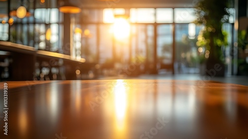 Sunlight Reflecting on Wooden Table in a Modern Cafe