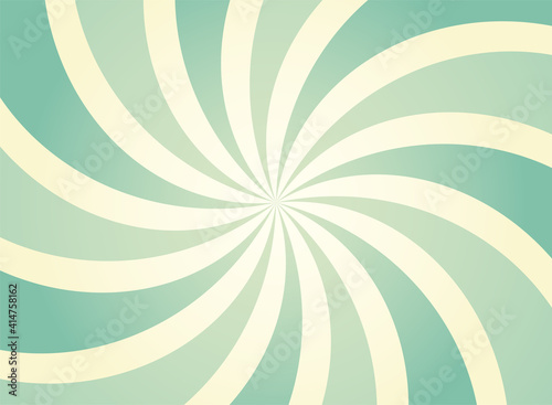 Sunlight spiral wide background. Sage green and beige color burst background.