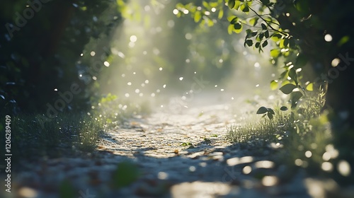 Sunlight streaming through a forest path