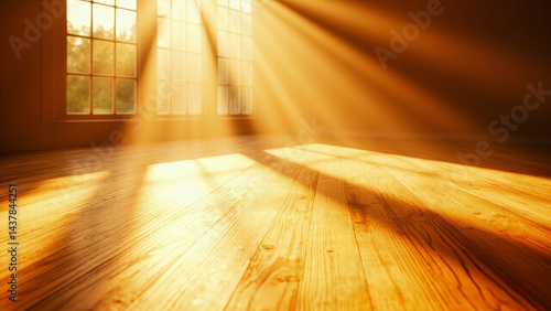 Sunlight streaming through a window onto a wooden floor, creating an inviting and warm atmosphere