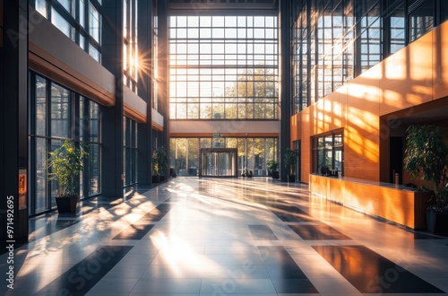 Sunlight Streaming Through Modern Office Lobby
