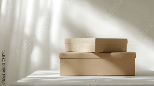Sunlit Cardboard Boxes on Table.
