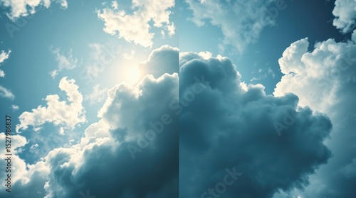 Sunlit cloudscape, dramatic contrast, sky, weather, comparison, background, design, advertising