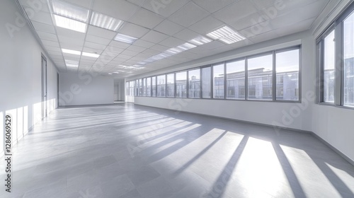 Sunlit Empty Office Space, Modern Architecture and Bright Interior Design