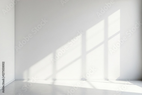 Sunlit Empty Room Interior Design Mockup White Walls and Floor with Light and Shadow Play