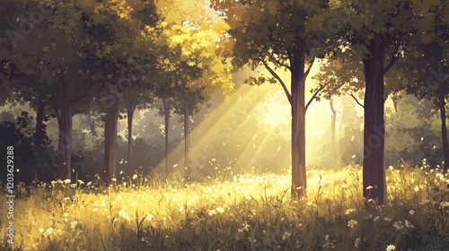 Sunlit Forest Meadow- Magical Golden Hour Landscape Painting