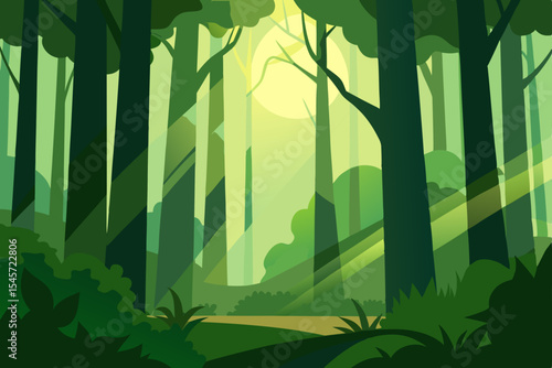 Sunlit Forest Path A Serene Illustration of Nature's Tranquility
