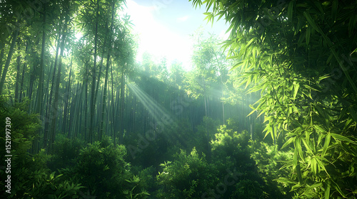 Sunlit Green Bamboo Forest